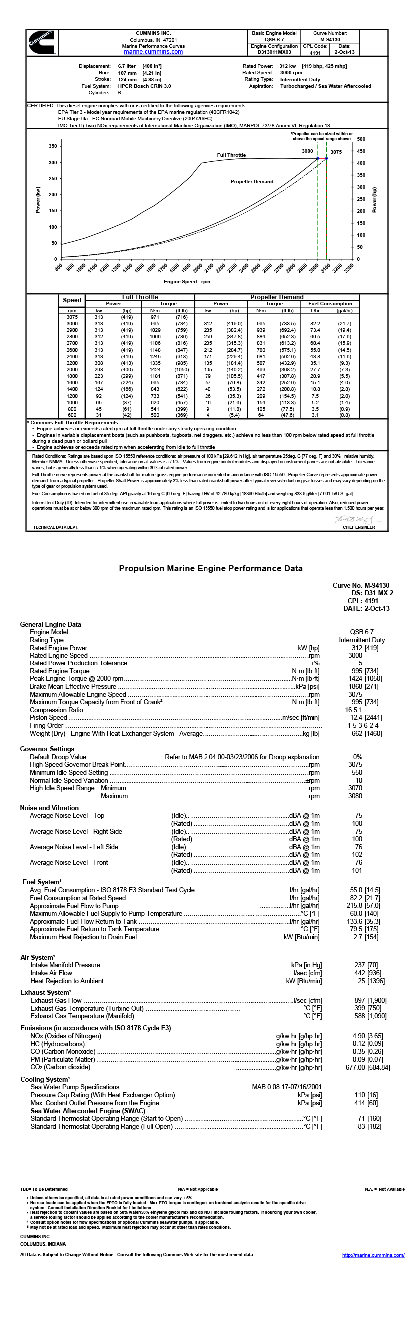 EPA Tier 3-Model year requirements of the EPA marine regulation(40CFR1042);EU Stage IIIa-EC Nonroad Mobile Machinery Directive(2004/26/EC);IMO Tier II(Two)NOx requirements of International Maritime Organization(IMO),MARPOL 73/78 Annex VI,Regulation 13 |