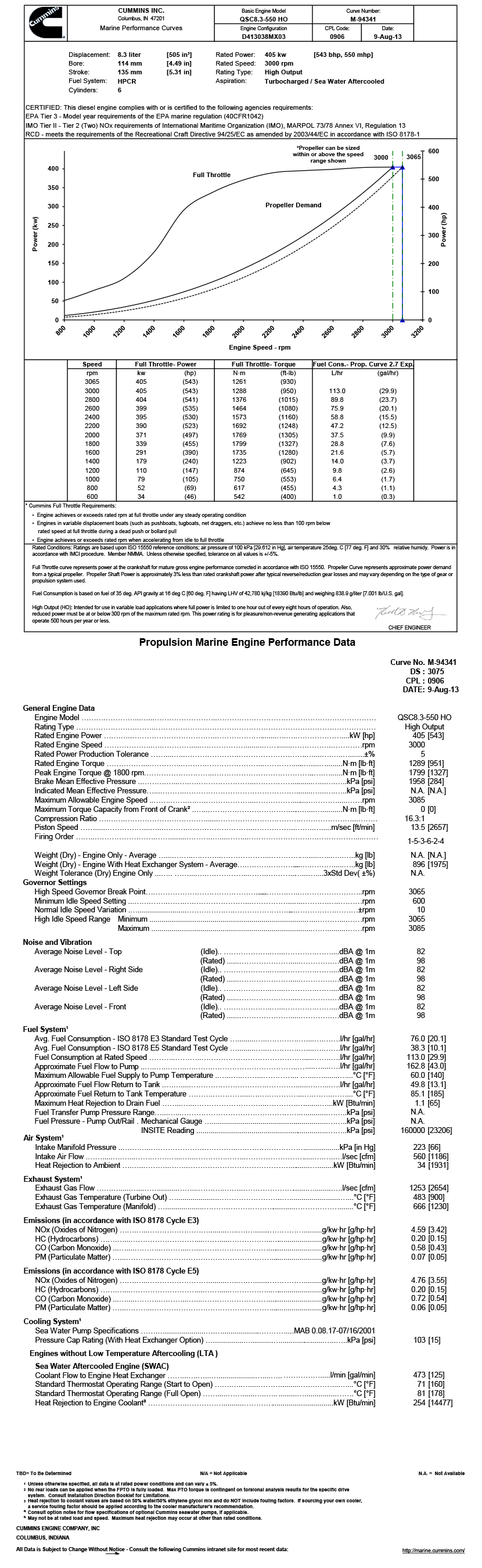 | 排放標準: | EPA Tier 3-Model year requirements of the EPA marine regulation(40CFR1042); IMO Tier II-Tier2(Two)NOx requirements of International Maritime Organization(IMO),MARPOL 73/78 Annex VI,Regulation 13;RCD-meets the requirements of the recreational Craft Directive 94/25/EC as amended by 2003/44/EC in accordance with ISO 8178-1 | ||