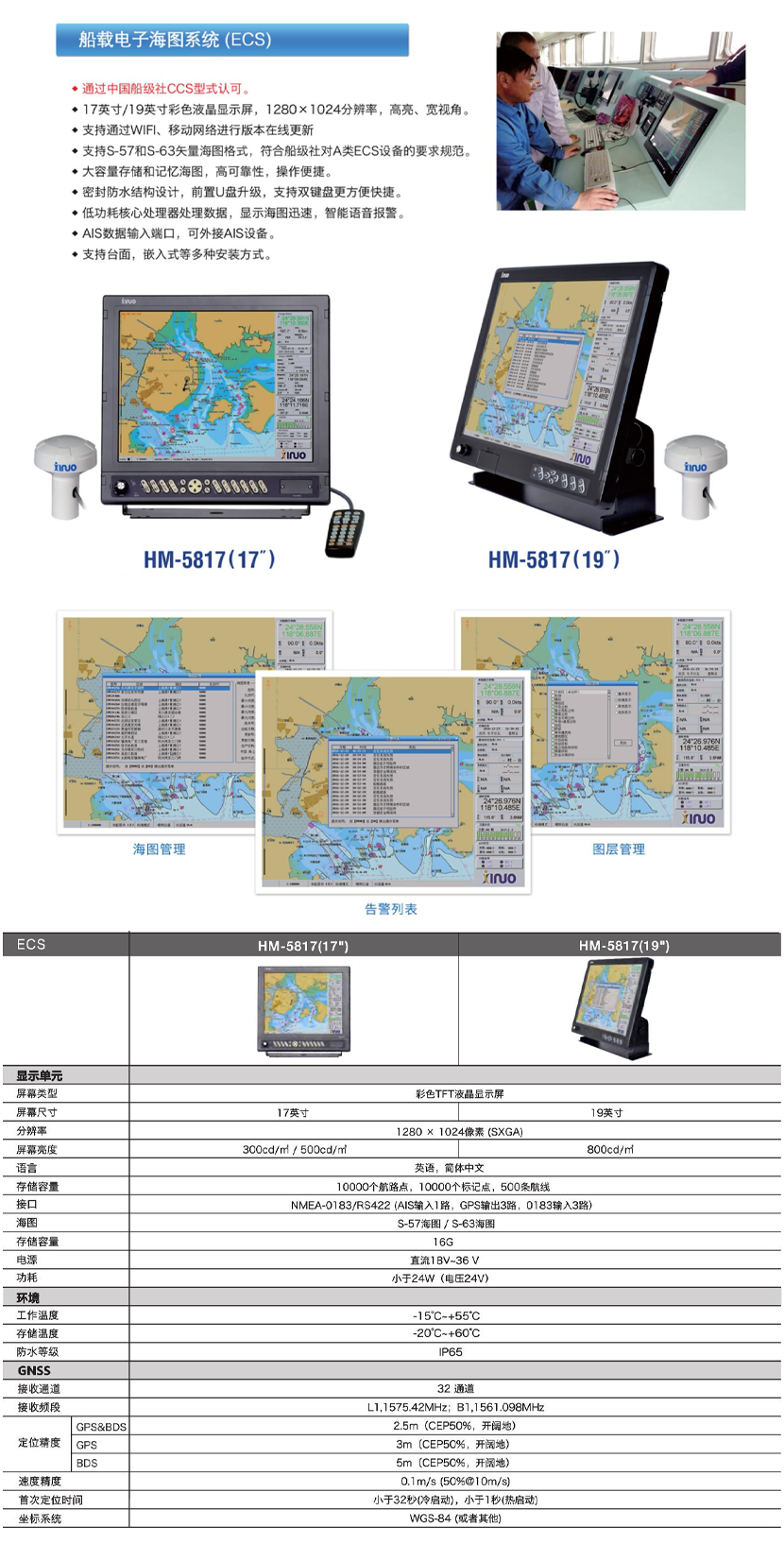 顯示單元: 17英寸 電子海圖庫: S—57海圖/S—63海圖