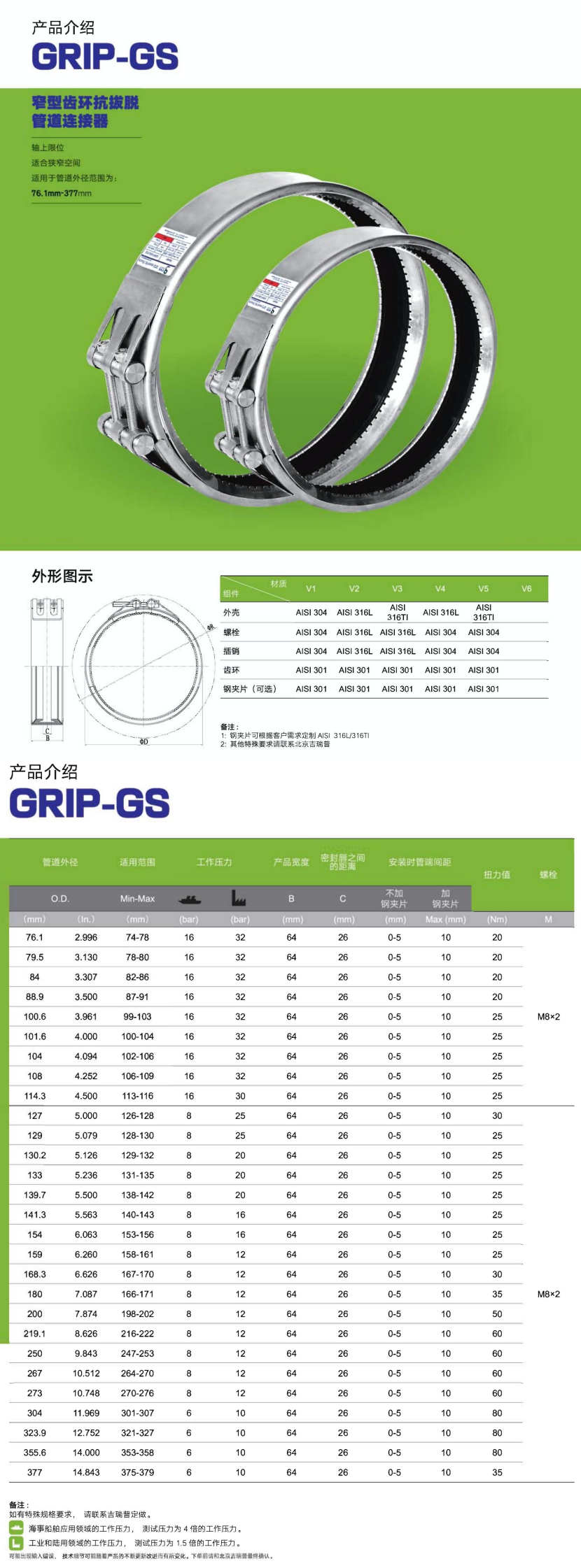 管道外徑: 180mm 適用范圍: 166~171mm
