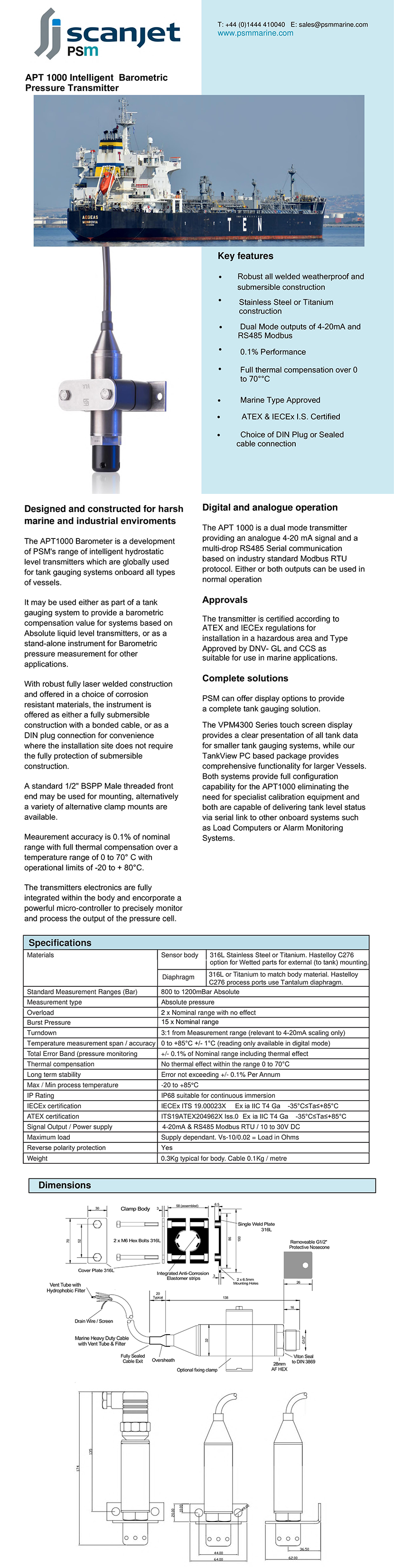 Robust all welded weatherproof and submersible construction ; Choice of Sealed cable connection or DIN Plug for either fully submersible installation or the installation site which does not require the fully protection of submersible construction; Can be also uesd as a stand-alone instrument for Barometric pressure measurement for other applications; |